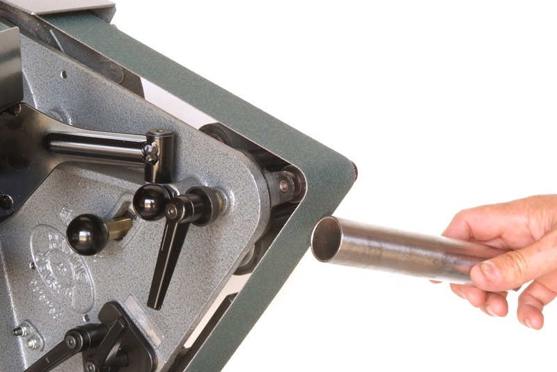 Radius Master’s unique design provides a multitude of functions via 7 work stations, each readily available in seconds and without tools, using an easy to operate index knob. Only the Radius Master brand of machines are capable of tracking the latest heavy duty polyester backed ceramic belts. 7 work stations provide a wide variety of surface finishing, intricate product de-burring, tube notching, profiling and precision sharpening of drills and cutters.